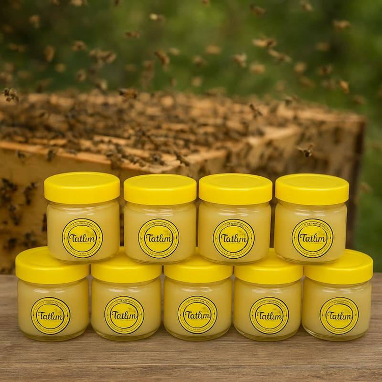 ژل رویال تاتلیم در بستههای ۱۰ گرمی استاندارد و بهداشتی عرضه میشود تا بهراحتی با عسلهای طبیعی تاتلیم ترکیب شود.